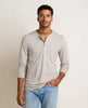 Features: Rib neck trim, woven henley placket, side vents