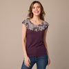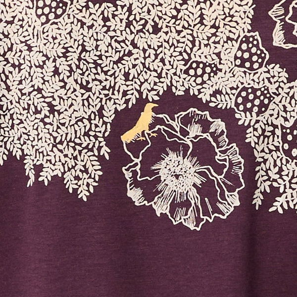 The Floral bamboo T-shirt from Umsteigen comes with the signature boat neck, cut raglan sleeves and soft bamboo jersey. It sports a hand screen printed floral graphic on the front and back shoulder, and a tiny bird detail on back. Don't let this soft, comfy tee pass you by!