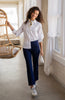 Polished and versatile, these stretchy cropped-flare pants feature an inner shaping panel that comfortably contours and creates a sleek silhouette. Buttons at the hems add a charming detail to this day-to-night look.