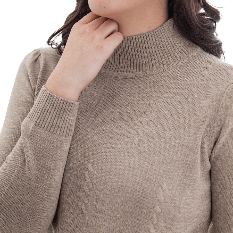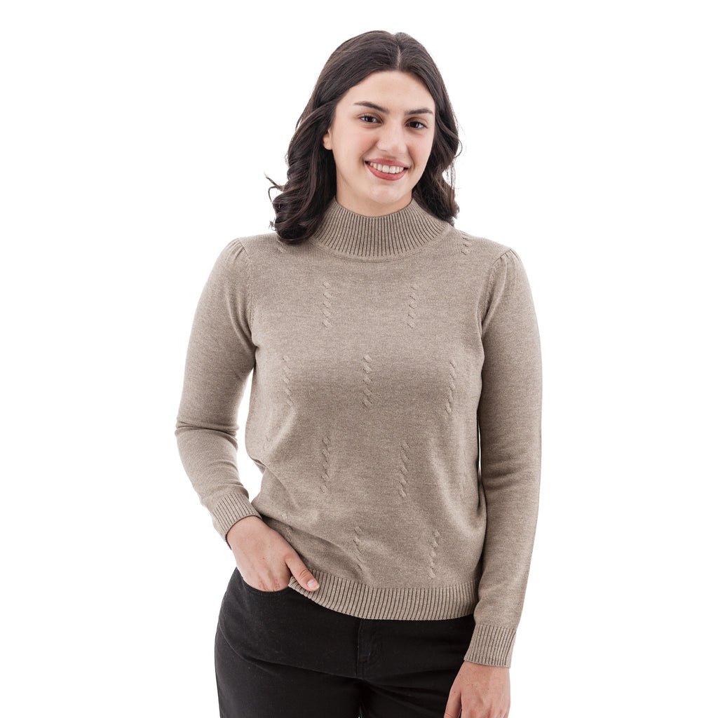 - Textured cable knit detail on body