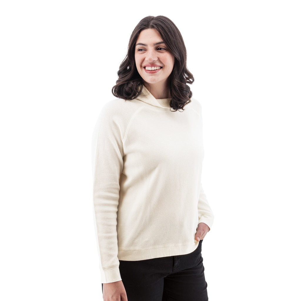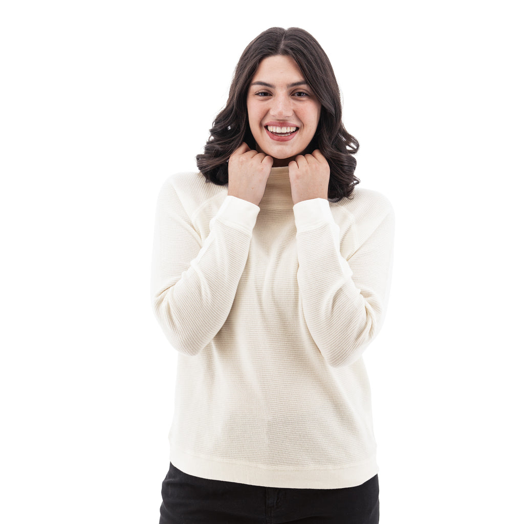 Meet your cozy weather companion: the Tiffi Thermal Cowl Neck. With a soft thermal knit blend of organic cotton and TENCEL™ Lyocell, this sustainable top strikes the perfect balance of warmth and breathability.